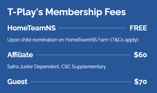 If you would like to sign your child up for the T-Play Membership under the SAFRA Junior Dependent rate of $60, please ensure that: